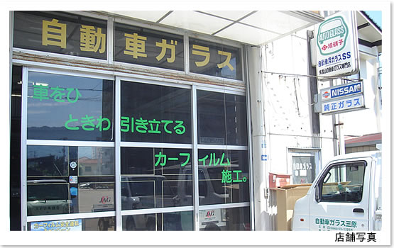 | 事業内容 | ★自動車ガラス販売・施工(新品・中古) ★カーフィルム販売・施工 ★各種シール張り ★フロントウインドリペア(補修) ★自動車ガラス(傷取り、油膜取り、雨漏れ修理) ★自動車天井内張り交換・修理 ★建設機械用ガラス販売・施工 ★アクリル販売・加工 |